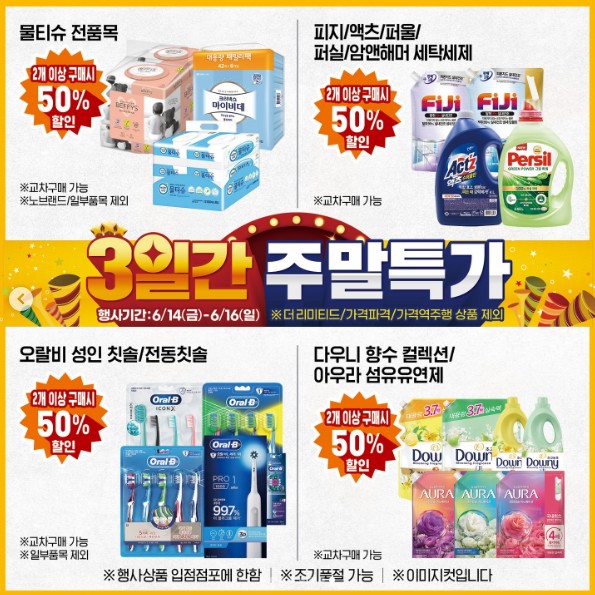 • 퍼지/액츠/퍼울/퍼실/암앤해머 세탁세제 50% 할인