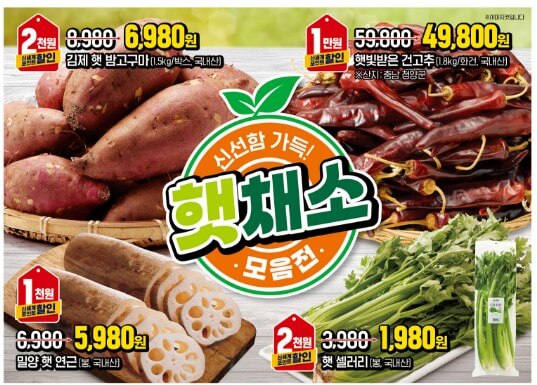 이번 주 이마트에서는 신선함이 가득한 햇채소들을 세일 행사합니다.