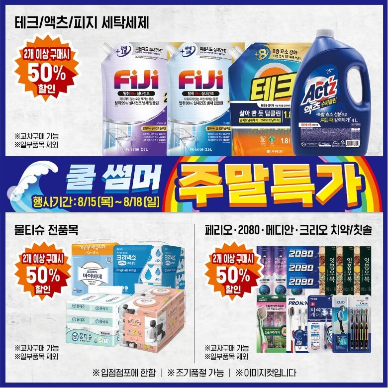이번주 이마트에서는 쿨 썸머를 테마로 8월 15일(목)부터 18일(일)까지 주말특가 세일을 4일간 진행합니다. 한우부터 라면, 포도, 키위, 달걀, 생필품 등 다양한 품목을 50% 할인행사 하니, 전단내용 확인하시고 알뜰 쇼핑 하시길 바랍니다.