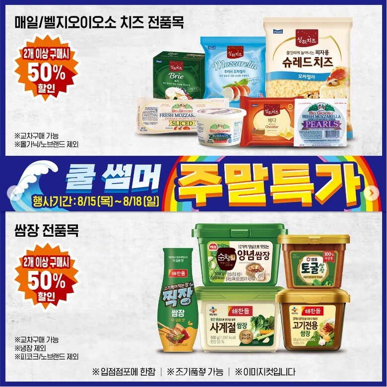 - 매일/벨지오이오소 치즈 전품목 50% 세일