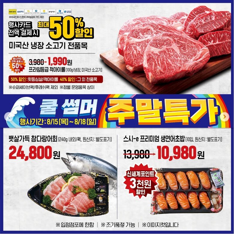 이번주 이마트에서는 '쿨썸머'라는 테마로 주말 특가 세일을 진행합니다.