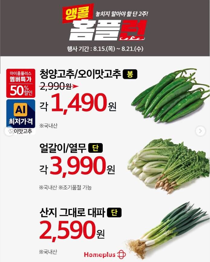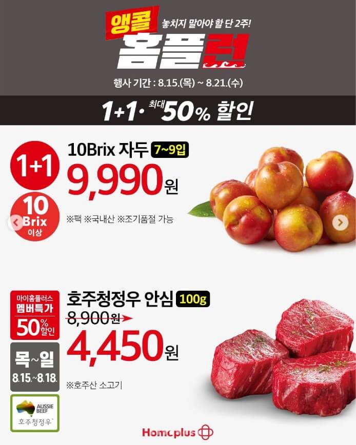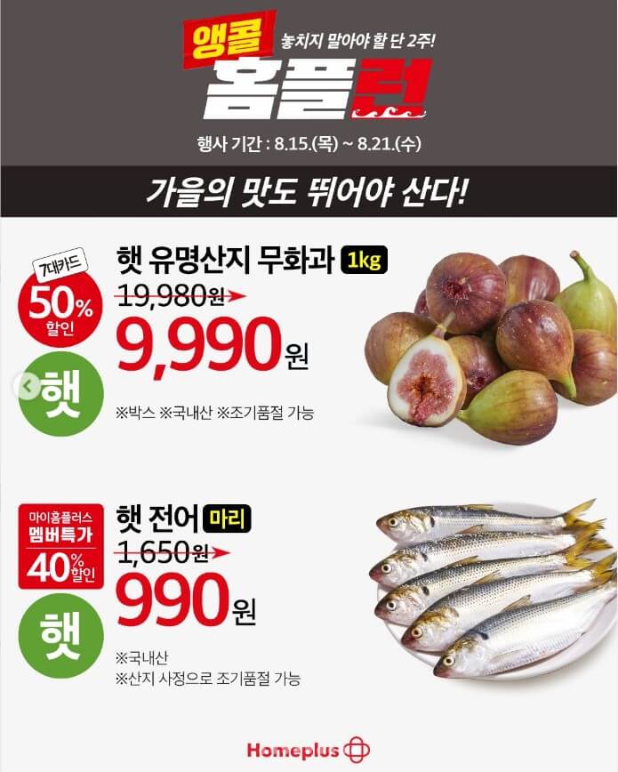 홈플러스 전단지 홈플런 앵콜 세일(8. 15. ~ 8. 21.)