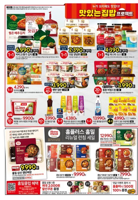 홈플런 세일에서는 한우부터 돼지고기 각종 채소를 저렴한 가격에 구매할 수 있고, 시리얼, 햄, 치킨 등 1+1 할인 행사도 진행되니 아래 전단지 확인해 보시기 바랍니다.