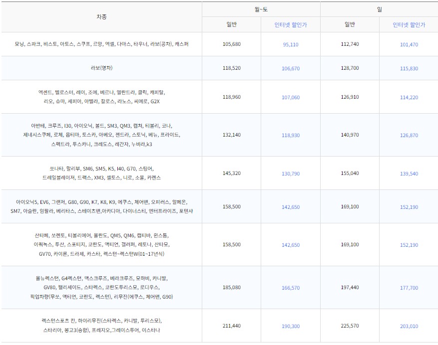 - 휴일 및 특별수송기간에는 10% 할증이 적용됩니다.