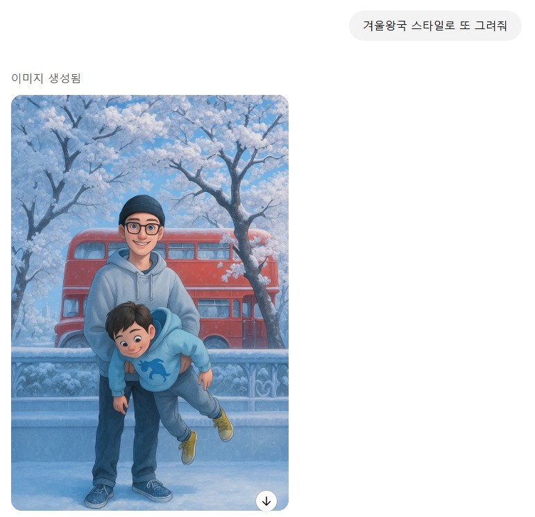 ▶️명령어: 겨울왕국 스타일로 그려줘.