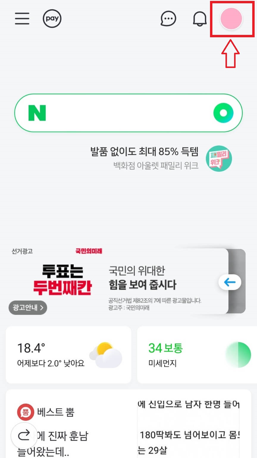 - 네이버 앱 접속 - 프로필 클릭