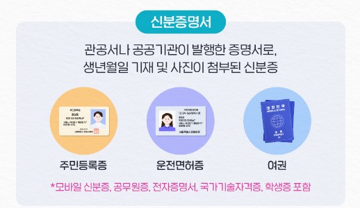 - 주민등록증 또는 운전면허증 선택