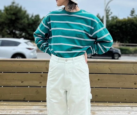 민희진 대표가 착용한 해당 제품은 캘리포니아 제너럴 스토어의 오가닉 코튼 보더 긴소매 컷소우 제품입니다.