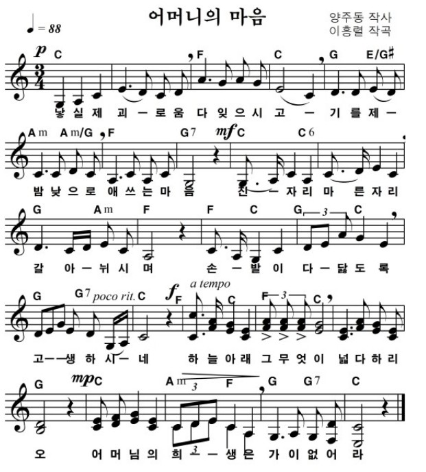 어버이날 노래 어버이은혜, 어머님 은혜, 어머니 마음 노래 가사 악보