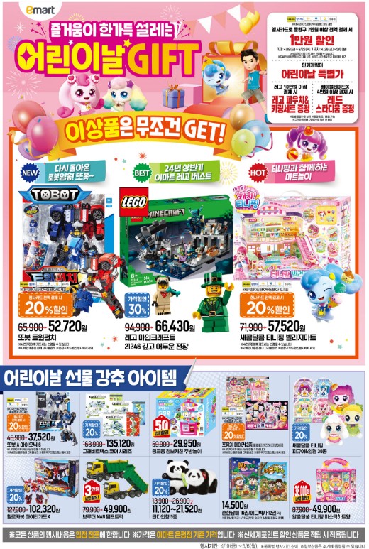 이마트에서는 같은 기간동안 어린이날 맞이 할인 행사를 함께 진행하고 있습니다. 어린아이가 있는 가족이라면 어린이날 행사 전단도 확인하고 가시면 쇼핑에 도움이 될 것 같습니다.